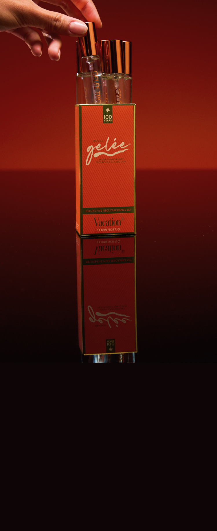 Discontinued in 2019 to the dismay of devotees, Orange Gelée® was meticulously reimagined by Vacation® in 2024 as part of the Orange Gelée® Revival Project. Today, Vacation® honors a century of this icon with “100 Years of Gelée.”