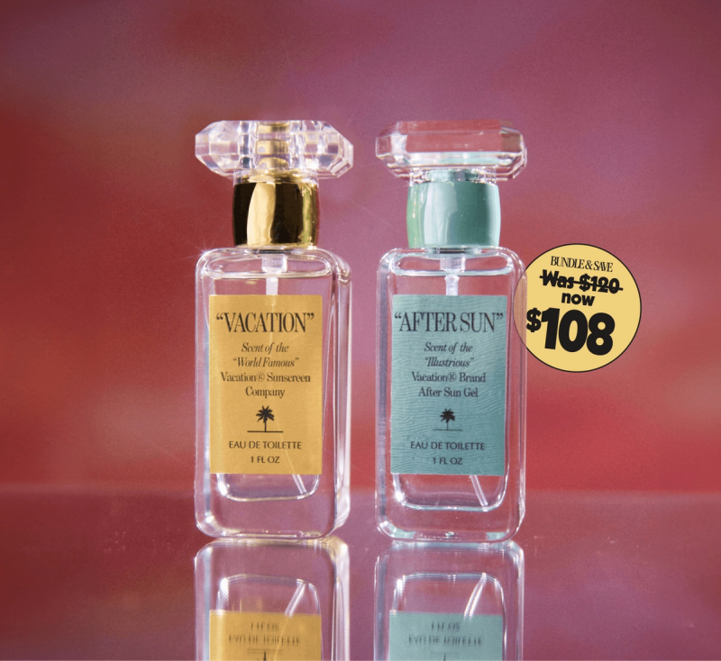 Experience the scent of summer days and summer nights with the Vacation® Eau de Toilette Duo, featuring both “VACATION” and “AFTER SUN” eau de toilettes, developed in conjunction with Carlos Huber of ARQUISTE Parfumeur and Rodrigo Flores-Roux of Givaudan. A $120 value for $108.